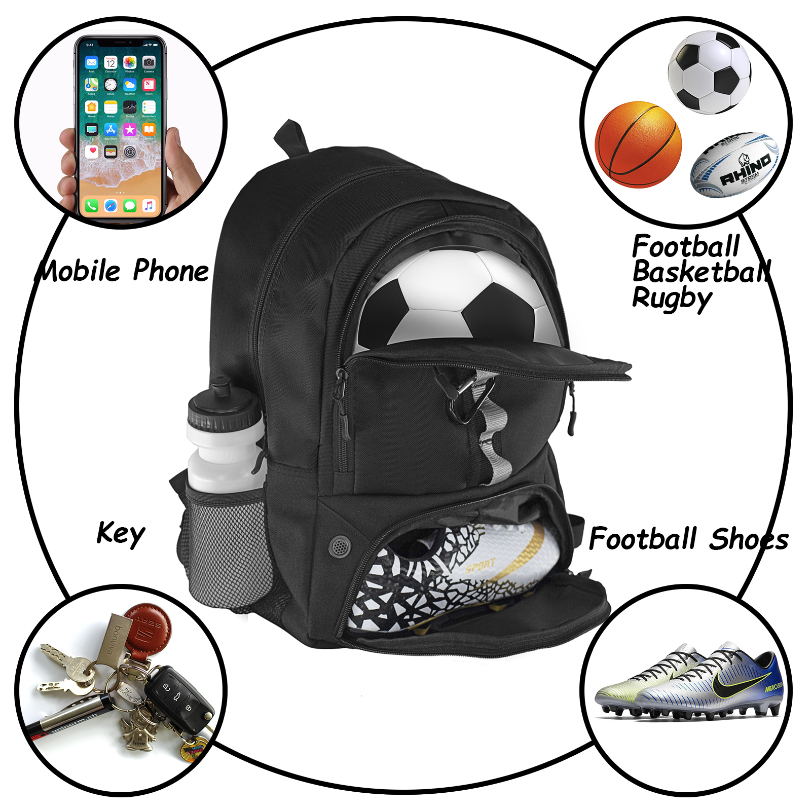 Large Capacity Custom For Sports Basketball Backpack Bag With Shoes Compartment Ball Holder