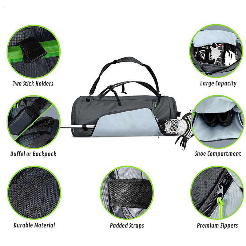 Factory Oem/odm Men And Women Lacrosse Duffel Bag High Quality Sports Lacrosse Backpack For Field Hockey Stick Bags