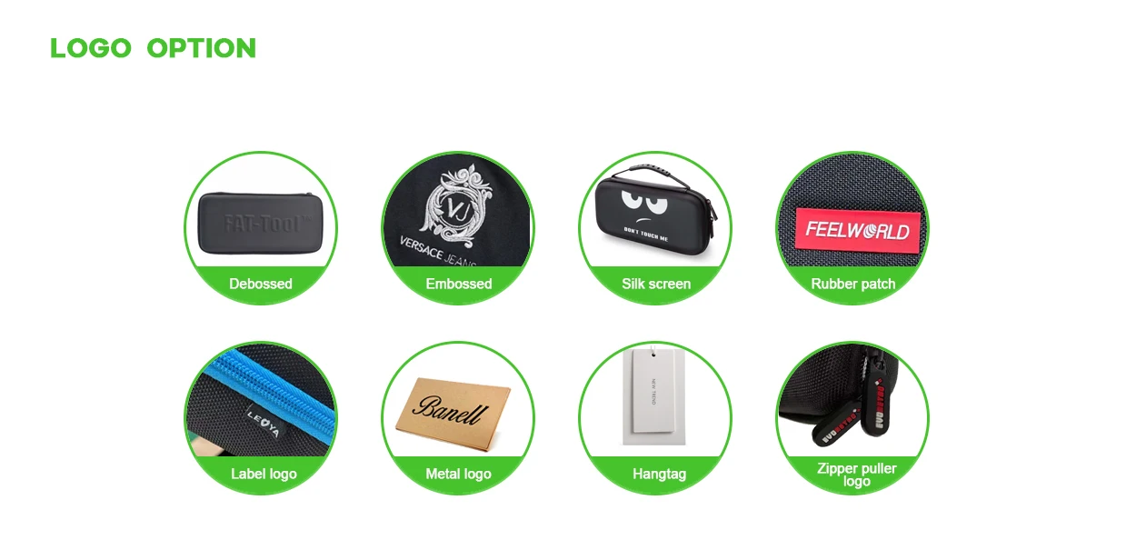 1) What kind of product your company produce? A:EVA case,Carrying case, Cosmatic bags, carry bags, fashion handbags, school bags, travel bags, wine bags, cooler bags and soon. 2) Can I make a sample? A: Yes, We can provide samples. 3) Can the sample charge be refunded or deducted from the payment for goods? A: Yes, as long as the bulk order is with us. 4) What is your sample time? A: Normally, 5-7 working days. 5) Can I custom my own LOGO in this bag? A: Yes. We can do custom logos on the products by: embossing, foil-stamping, silk-screening, laser engraving, or embroidering. 6 ) What’s the payment? A: Usually we accept T/T, we also can accept L/C,Western Union. 7) How about the shipping method? A: If you have your own shipping agent, you can use it; Meantime, we also had cooperated with many good forwarders. If you need,we can recommend some forwarders to you and you can compare the price and services.